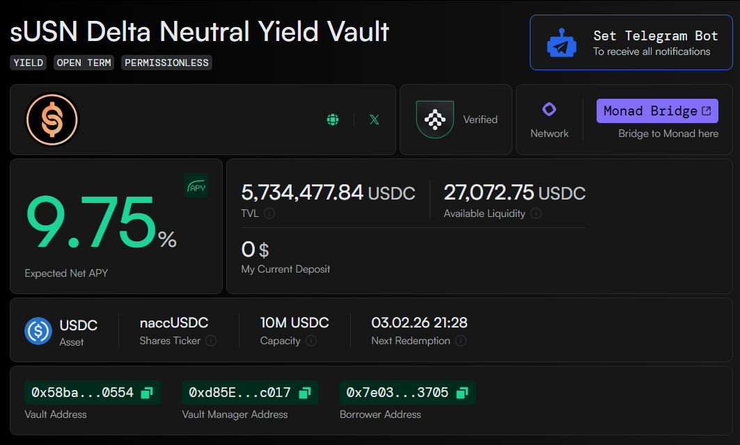Accountable sUSN Delta Neutral Yield Vault: 9.75% APY